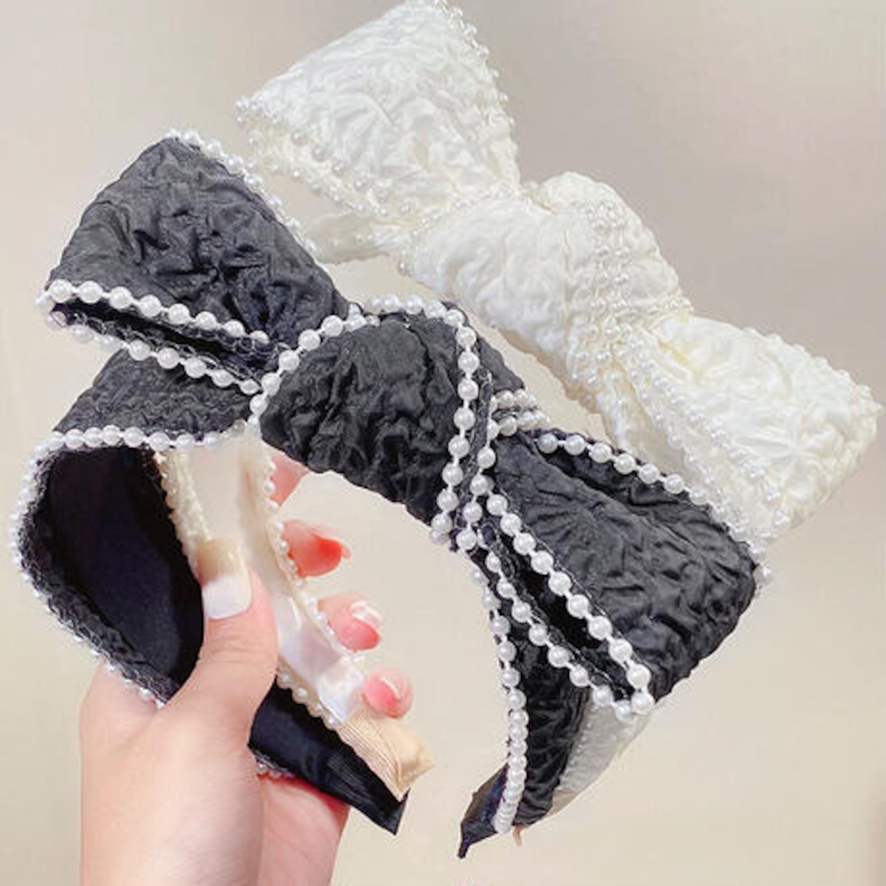 ❣️再入荷❣️パールリボンカチューシャ No.99092